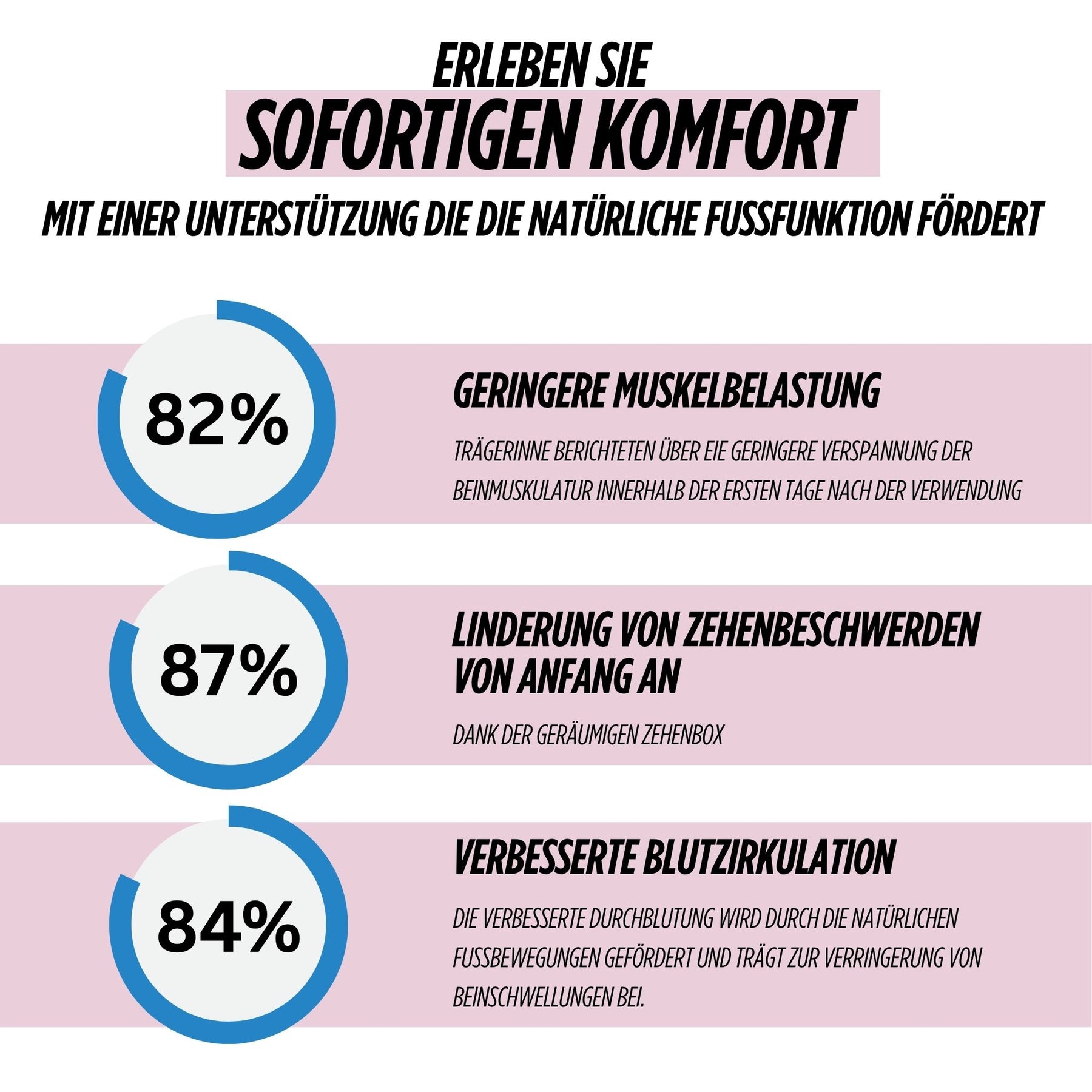 Nine specially integrated acupressure points specifically stimulate important reflex zones on your feet. They provide you with gentle pressure massage and increase walking comfort step by step—especially after long walks.
