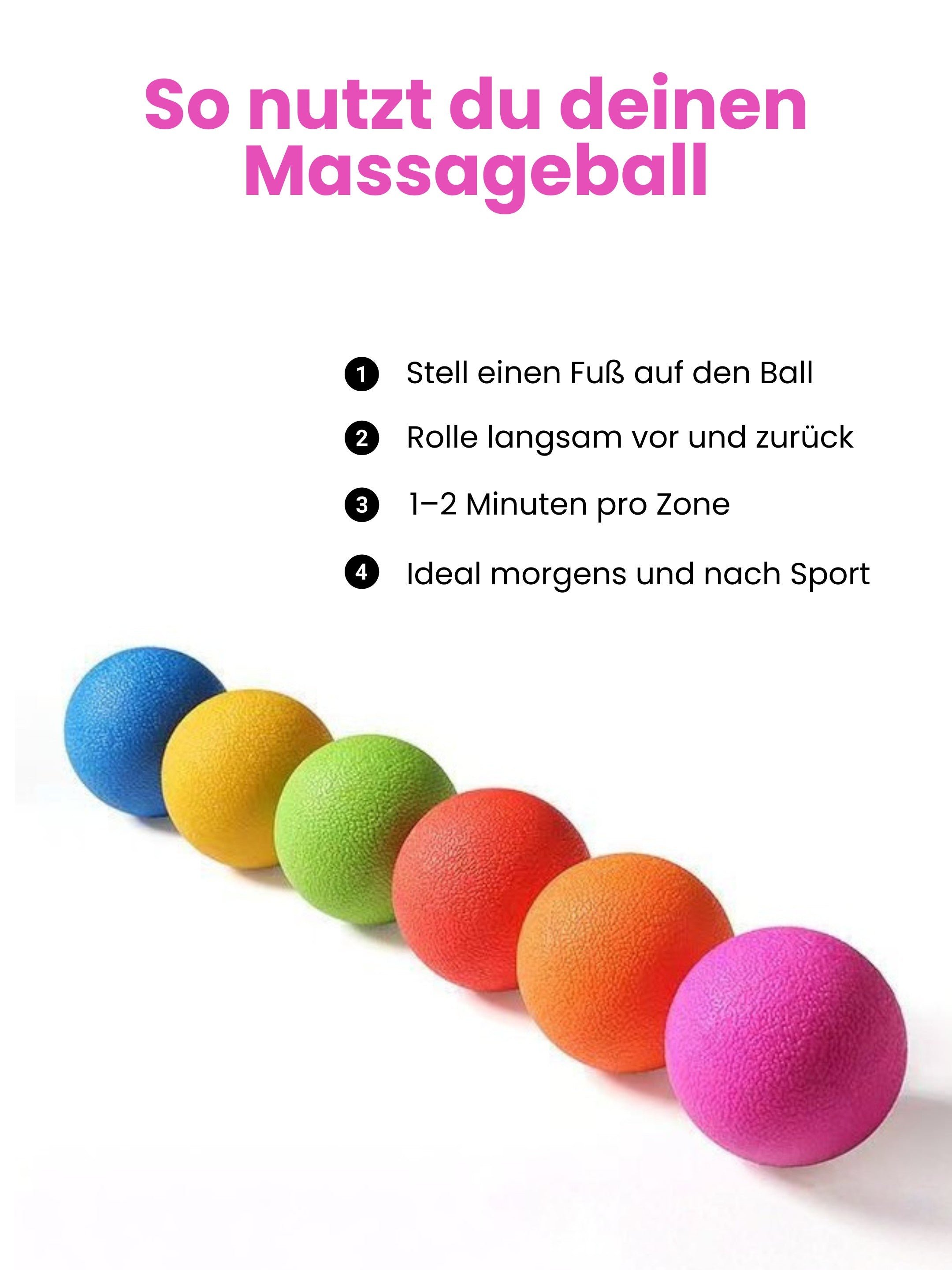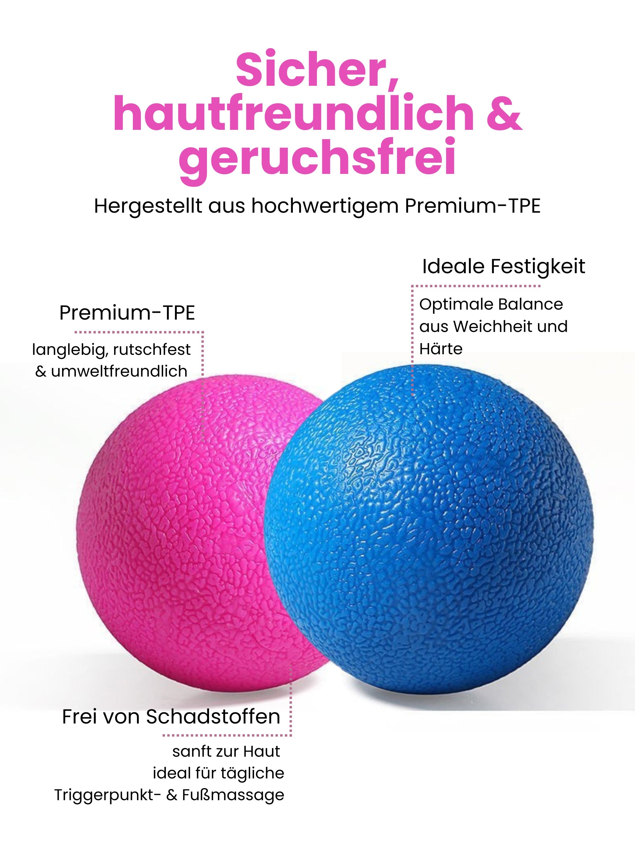 Ja – der Ball lässt sich perfekt auch für andere schmerzende Bereiche einsetzen. Du kannst damit gezielt Waden, Hände, Unterarme oder einzelne Triggerpunkte lösen und verspannte Muskelketten effektiv entspannen. Ideal, wenn du schnell spürbare Erleichterung bei verhärteten oder überlasteten Stellen suchst.